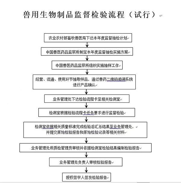 獸用生物制品監督檢驗流程(試行)